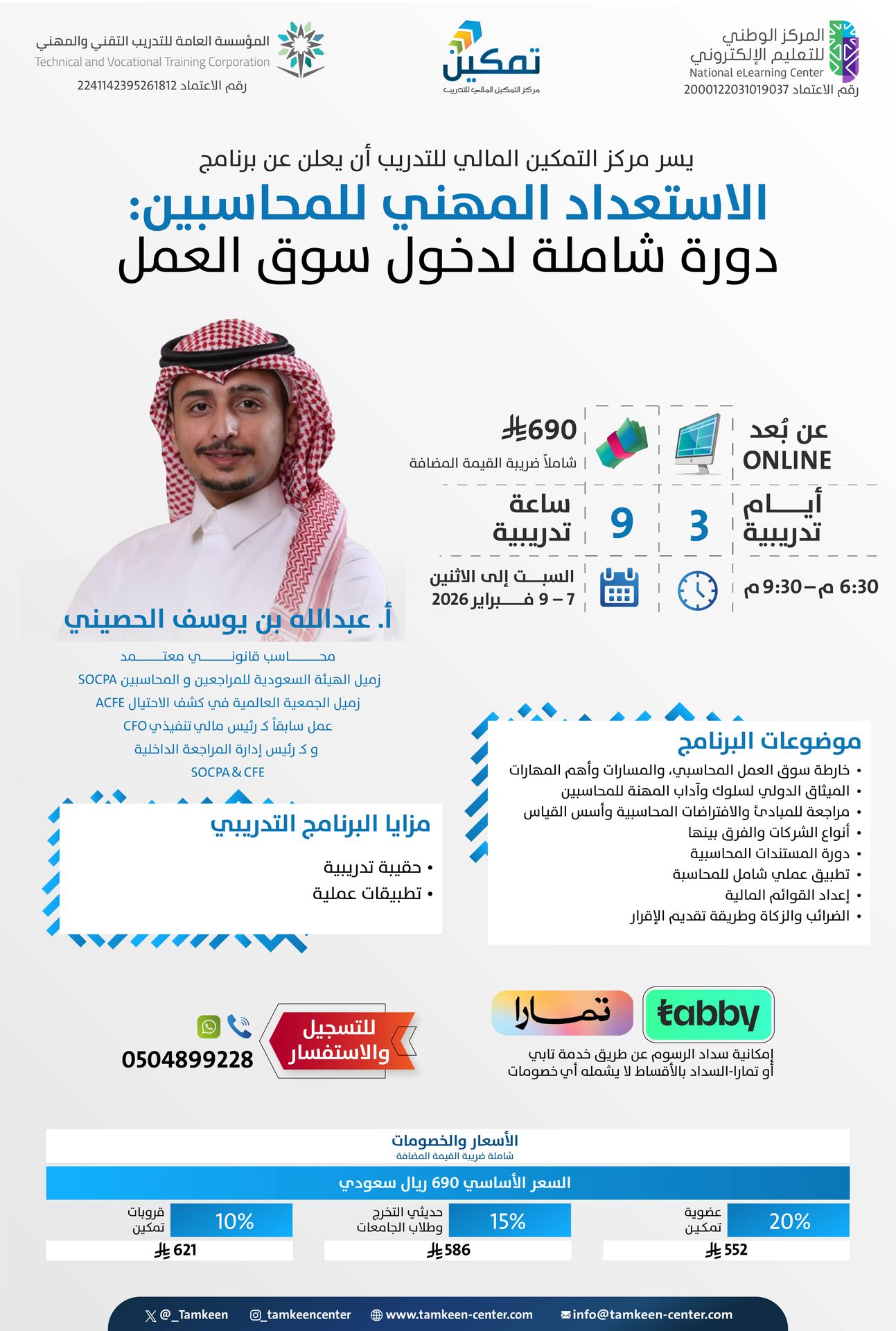 - رفع كفاءة المحاسبين الجدد في إعداد القوائم المالية والتقارير المهنية وفقاً للمعايير المحاسبية.